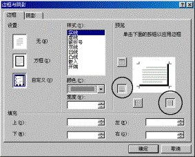 接下来的工作就是要为右边和下边的黑色边框制作阴影,我们使用CSS样式的功能来实现。在图二所示的选项窗口内点击“样式”按钮继续选择“格式”-“边框”。在边框与阴影选项框内,分别将样式选择为“实线”;颜色选择为“灰色”;并在预览选项内将下边和右边的边框应用按钮选中,如图四所示。