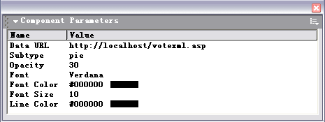 图2   这里将使用一个图表组件(HTML UI Components中的Subtype),你可以到MM扩充资源www.macromedia.com/exchange/flash下载.   参数设置如下: