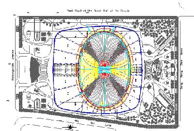 国家大剧院超大超深的地下结构体量,椭球抛物面壳体屋顶和围绕壳体的环形水池都是安得鲁实现其剧院功能需求与其情感表达需求的手法和元素。为了在不超越人民大会堂的限定高度内,完成剧场功能对竖向尺度的需求,“深入地下”是其自然的(也许是无奈的)选择;椭球抛物面壳体屋顶罩住其下的三个功能剧场是建筑师进行区域空间整和的一种手段,在这块区域上的建筑物进行这样的整和处理我认为是必要的;建筑师设置环形水池的目的在于其制造区域宁静气氛的需要,这种建筑情感表达上的需求也是必要的。
